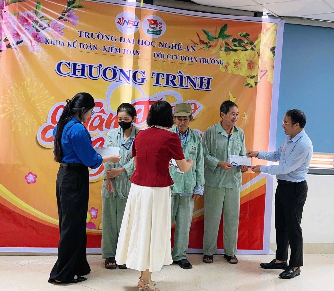 Đội Cộng tác viên Đoàn trường phối hợp cùng Khoa Kế toán – Kiểm toán tổ chức chương trình “Xuân trao yêu thương” tại Bệnh viện Ung bướu tỉnh Nghệ An, gửi đến các bệnh nhân đang điều trị những suất cơm nghĩa tình trong những ngày đầu xuân.
