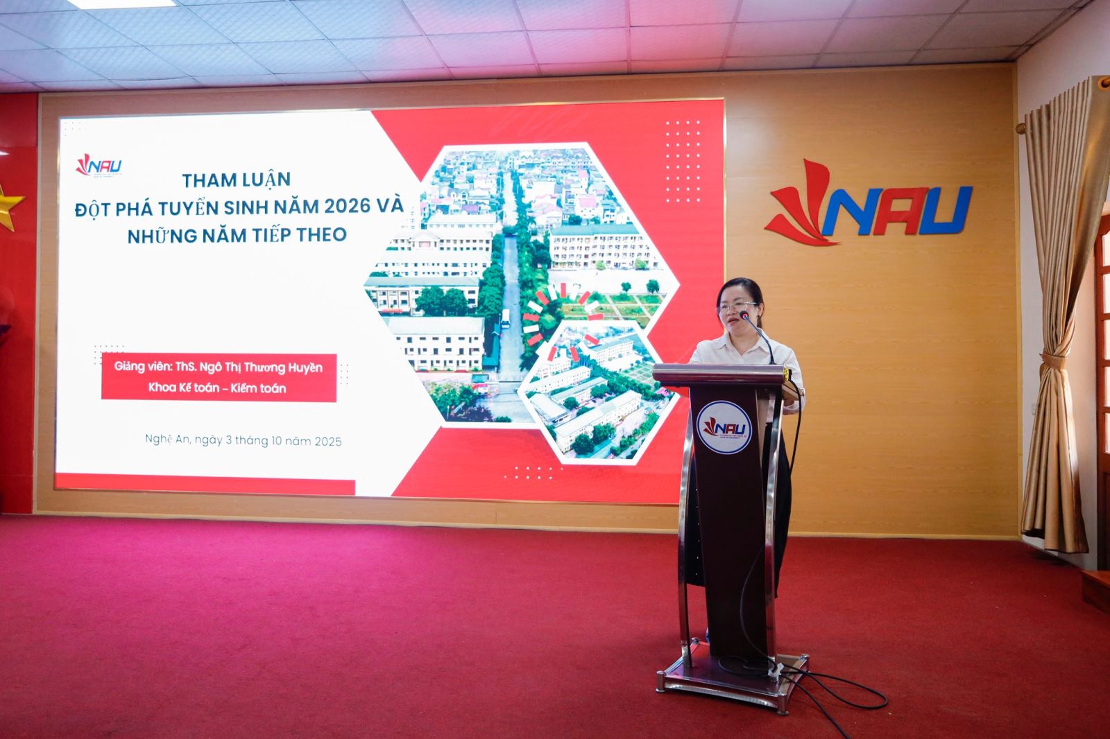 Chiều ngày 03/10/2025, Trường Đại học Nghệ An long trọng tổ chức Hội nghị tổng kết công tác tuyển sinh và truyền thông năm 2025 và triển khai phương hướng, nhiệm vụ năm 2026. Đây là hoạt động quan trọng nhằm nhìn lại chặng đường nỗ lực của toàn Trường trong công tác tuyển sinh và truyền thông, đồng thời đề ra những định hướng chiến lược để tiếp tục đổi mới, nâng tầm hiệu quả trong giai đoạn tới.