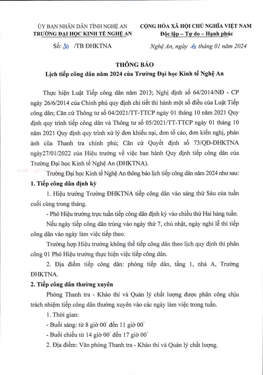 Lịch tiếp công dân năm 2024