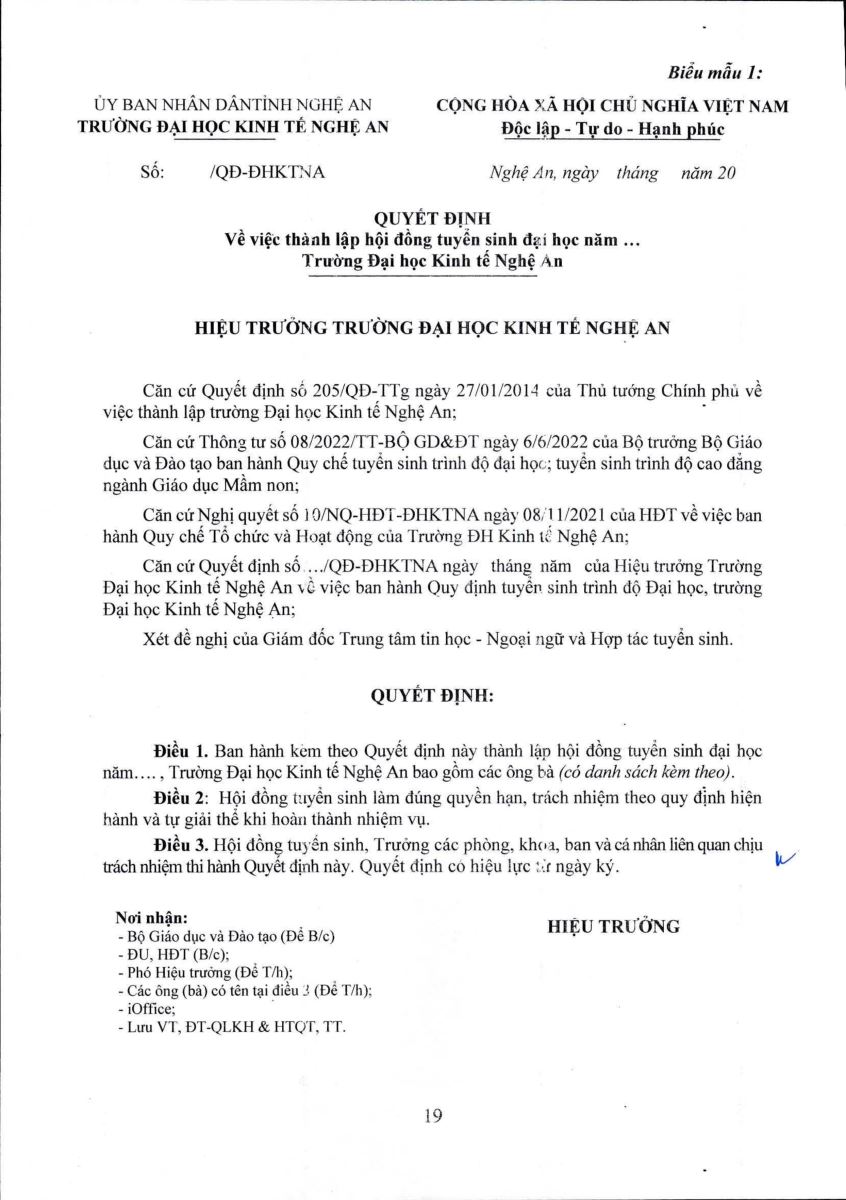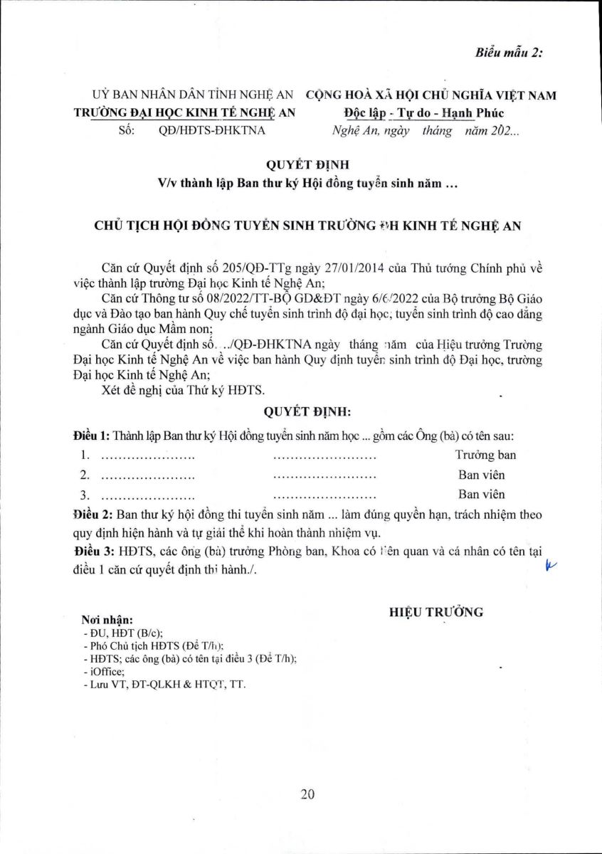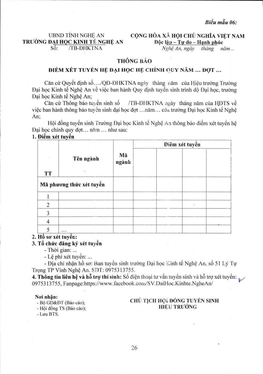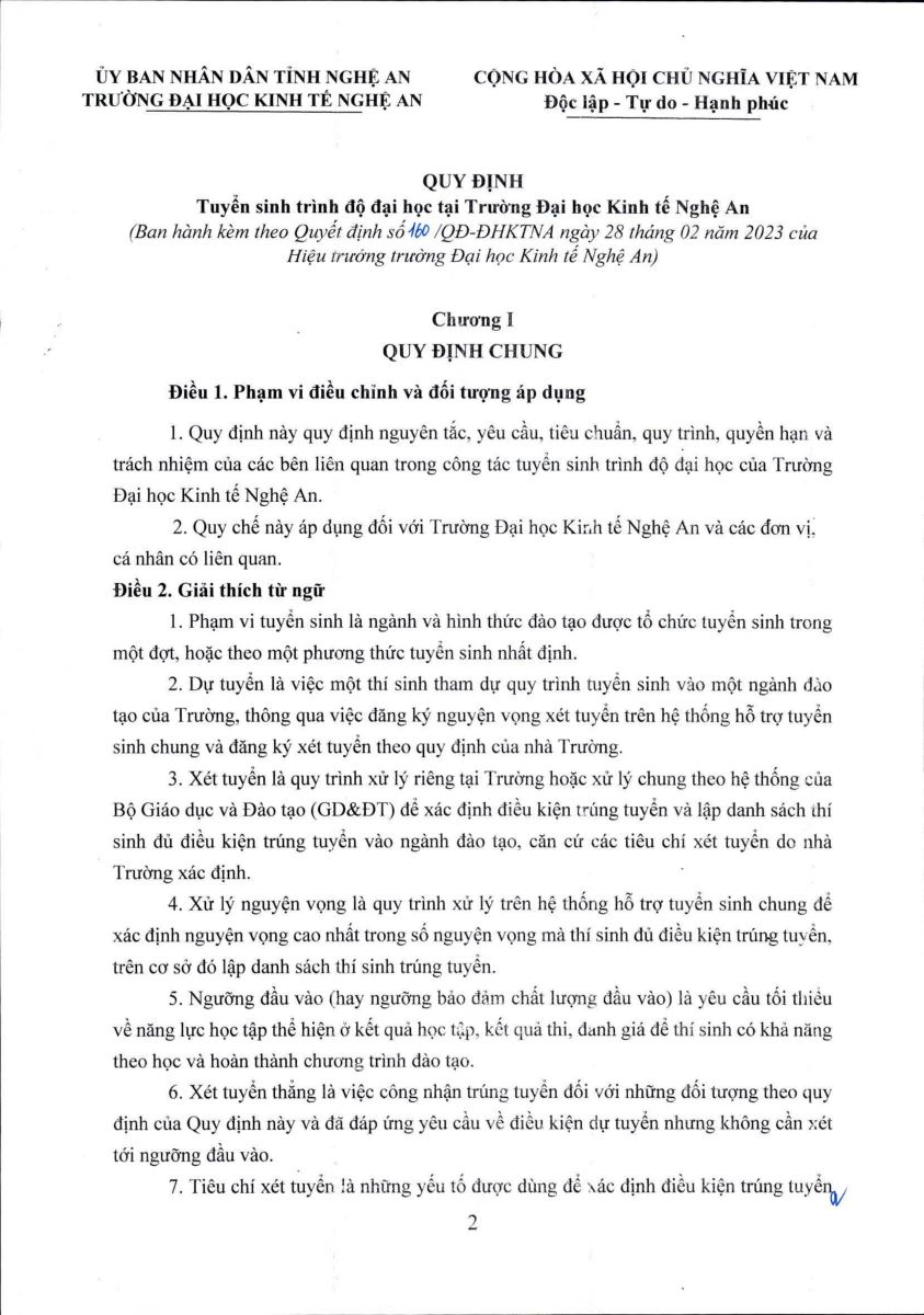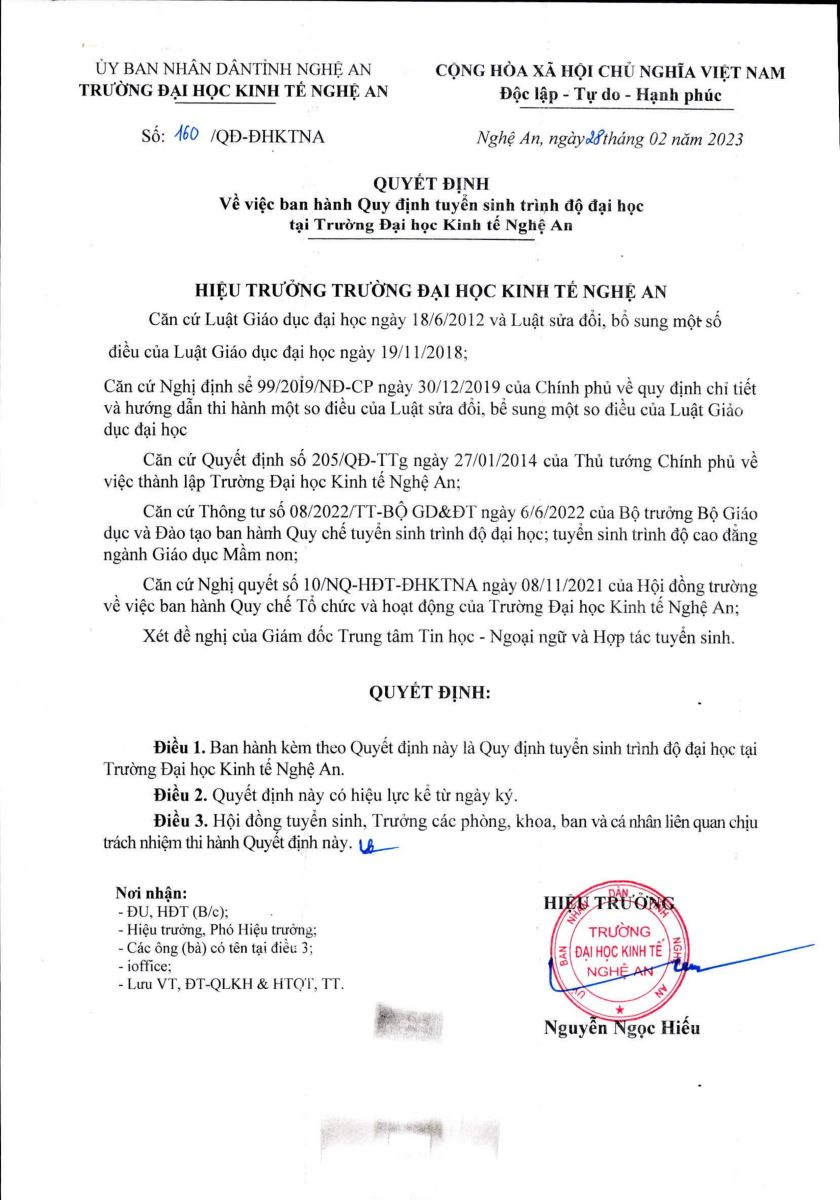 Quyết định về việc ban hành Quy định tuyển sinh trình độ đại học tại Trường Đại học Kinh tế Nghệ An 01/03/2023 01:12 4478 lượt xem