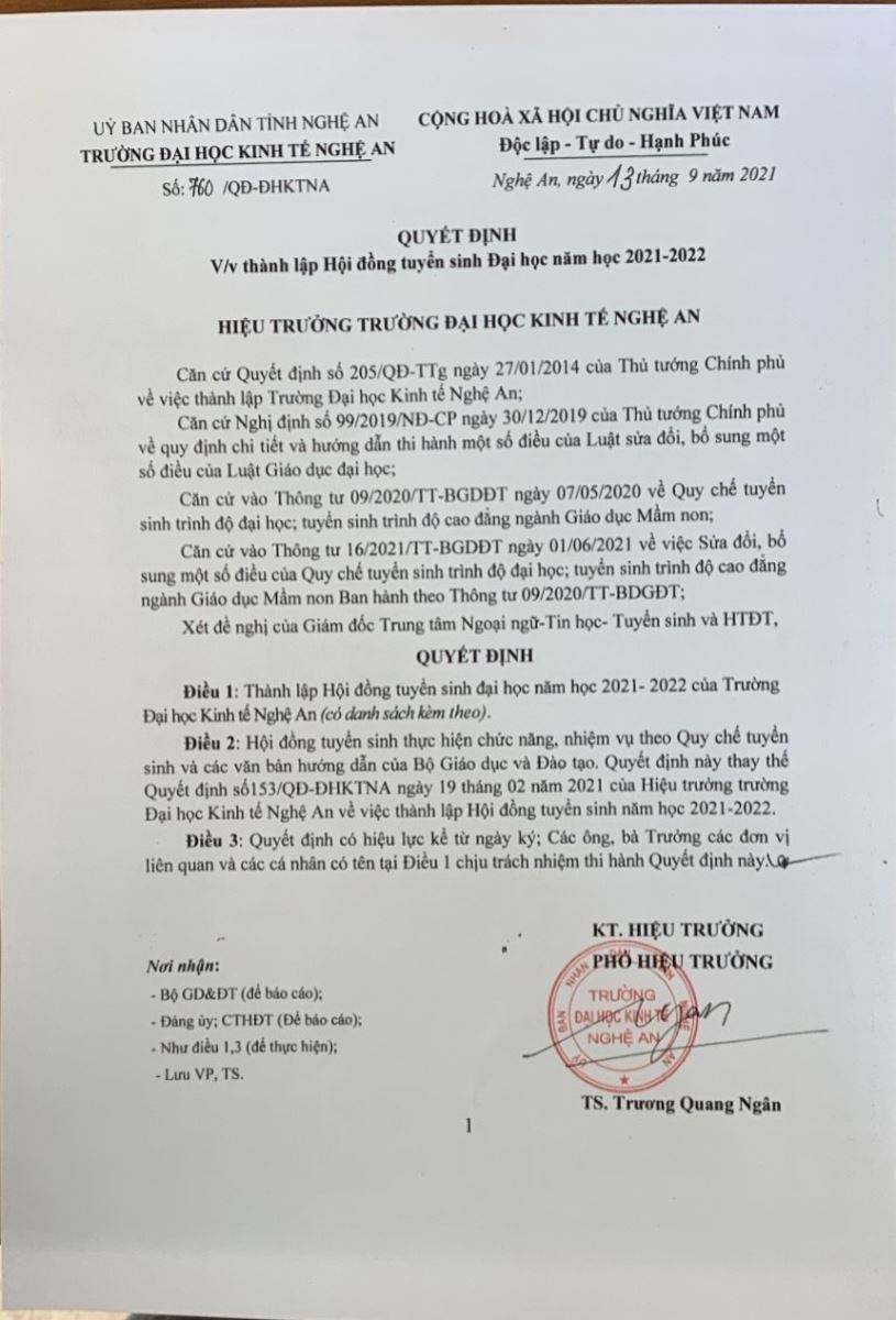 Quyết định về việc Thành lập Hội đồng tuyển sinh Đại học năm học 2021-2022 13/09/2021 10:01 4388 lượt xem