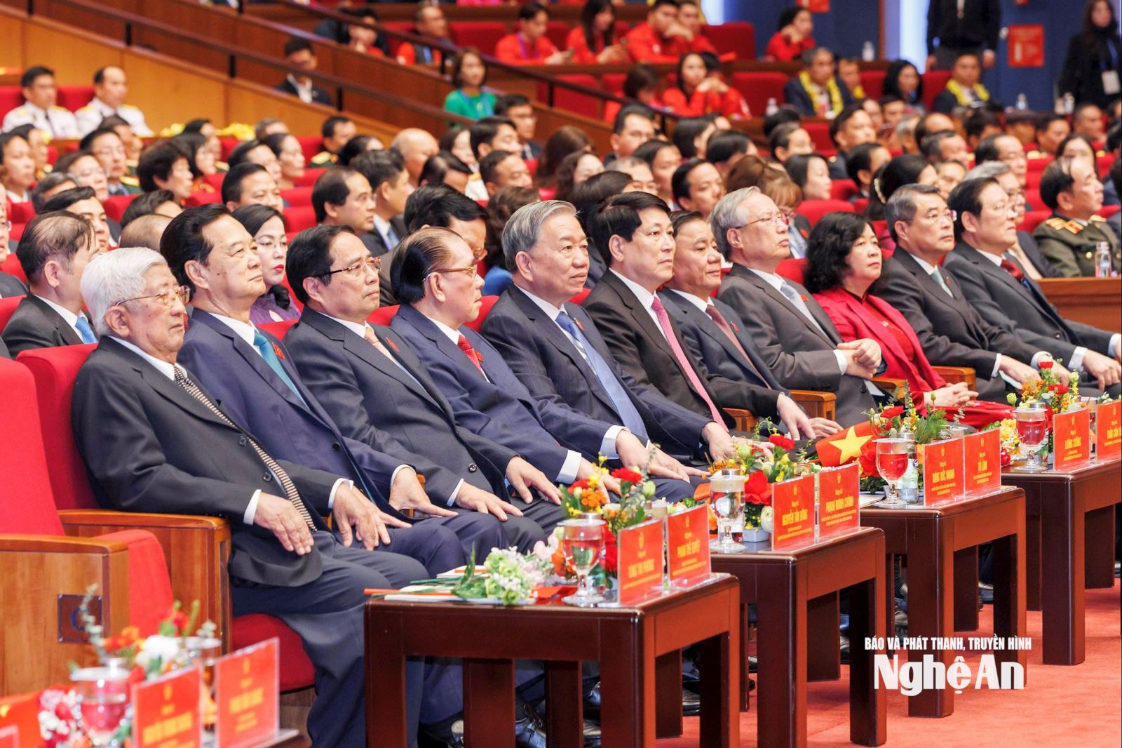 Lãnh đạo Đảng và Nhà nước tham dự Đại hội (Ảnh: Báo, phát thanh và truyền hình Nghệ An)