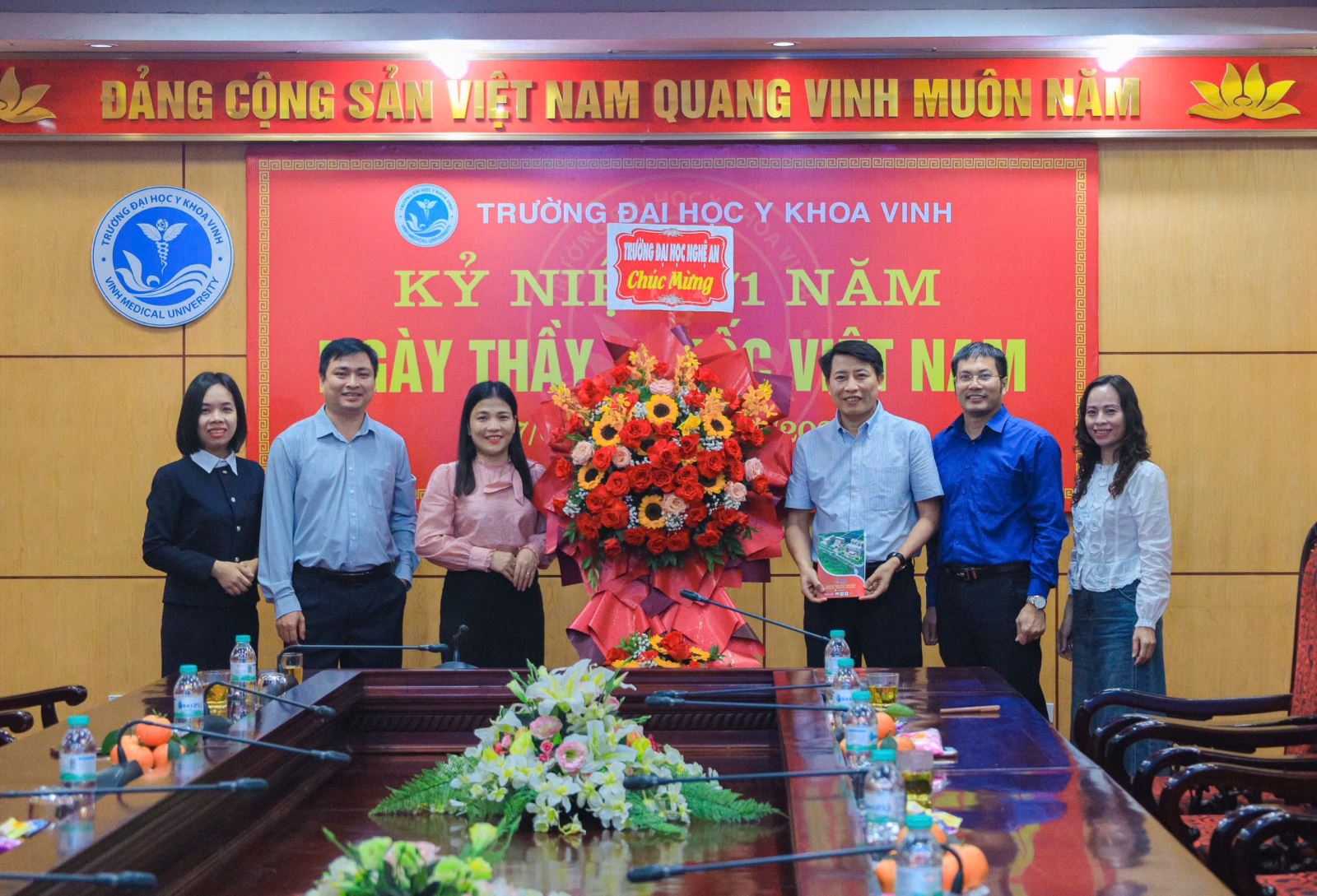 Bên cạnh các cơ sở khám, chữa bệnh, đoàn công tác Trường Đại học Nghệ An cũng đã đến thăm và chúc mừng Trường Đại học Y Khoa Vinh – đơn vị đào tạo nguồn nhân lực y tế chất lượng cao cho khu vực Bắc Trung Bộ và cả nước.