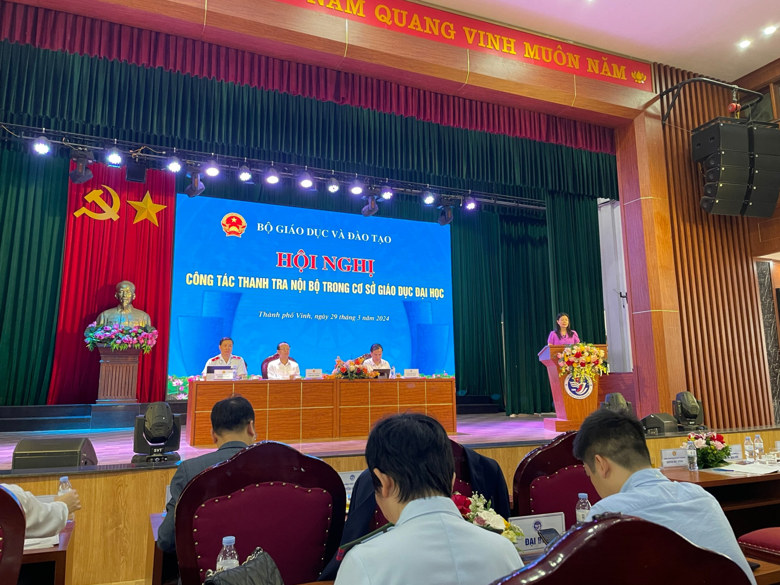 Sáng ngày 29 tháng 3 năm 2024, tại Trường Đại học Vinh, Bộ Giáo dục & Đào tạo đã tổ chức Hội nghị công tác thanh tra nội bộ trong cơ sở giáo dục đại học.