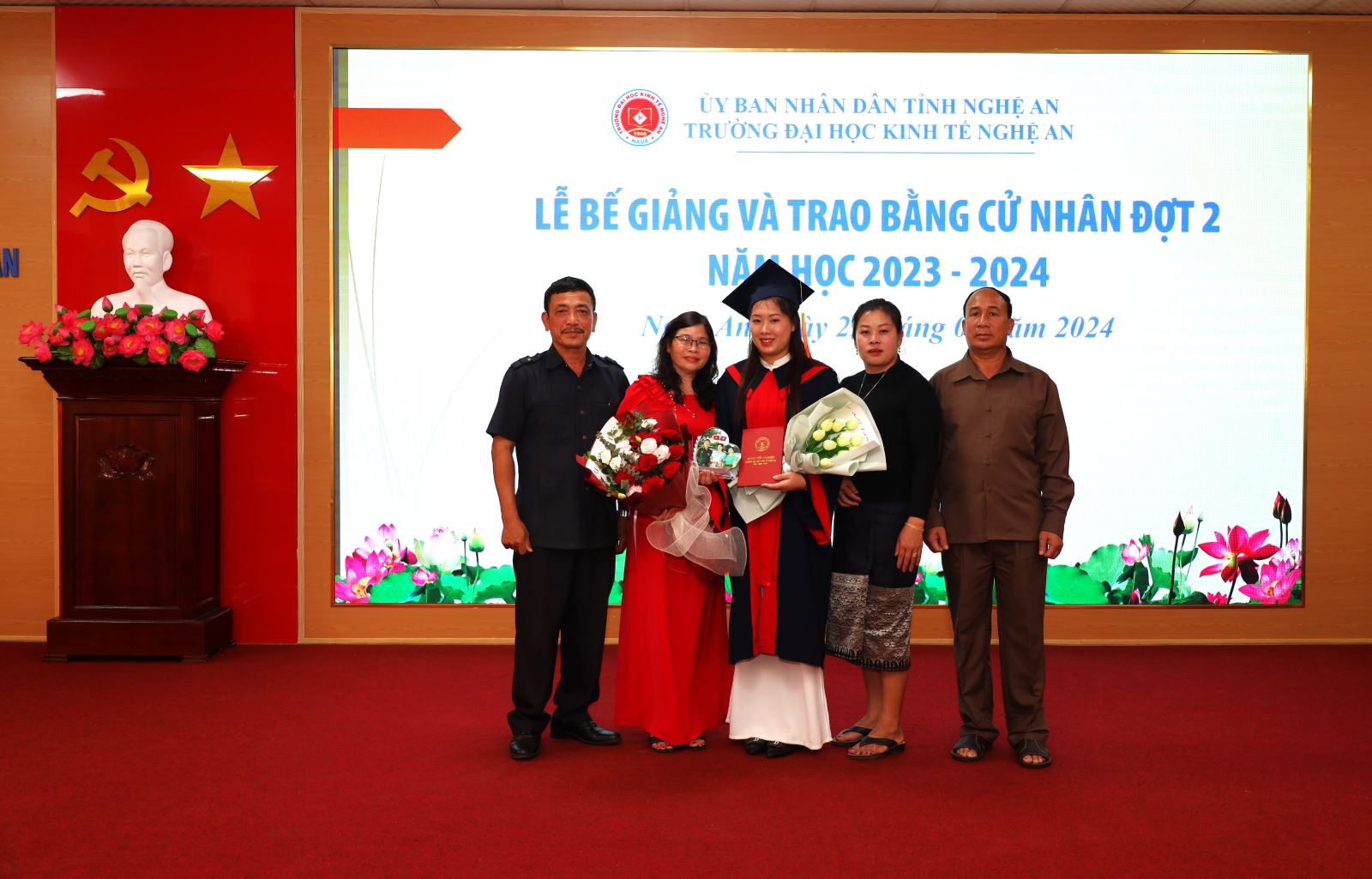 Bố mẹ đẻ từ Lào và bố mẹ nuôi ở Việt Nam, đã không quản ngại xa xôi đến NAUE để chúc mừng con gái