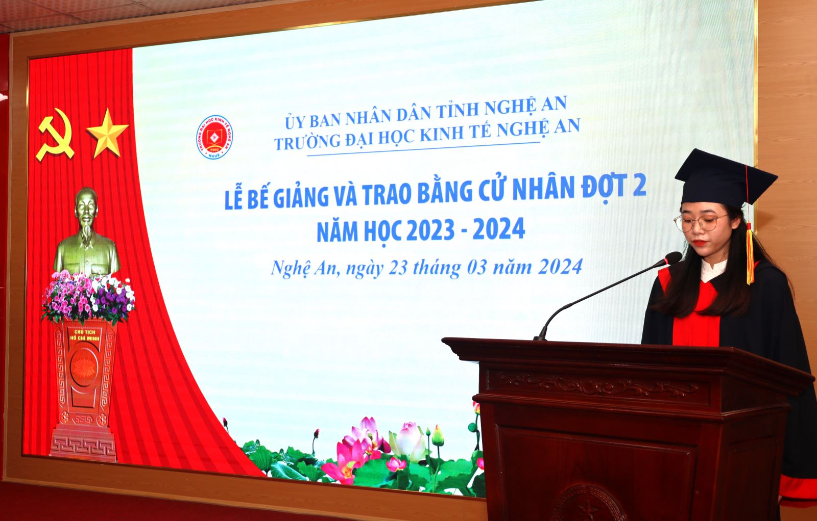 Ngày 23/3/2024, Trường Đại học Kinh tế Nghệ An long trọng tổ chức Lễ tốt nghiệp năm 2024 cho gần 200 sinh viên tại Hội trường Trường Đại học Kinh tế Nghệ An, Lễ tốt nghiệp là cột mốc quan trọng đánh dấu sự trưởng thành của sinh viên trước khi bước vào một thế giới hoàn toàn mới và đầy thử thách trong tương lai.